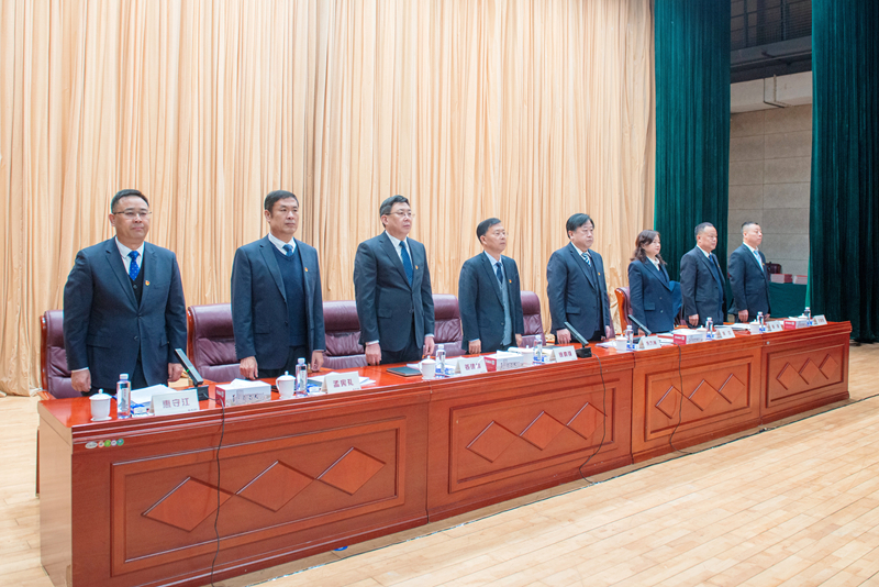 工人文化宫内气氛庄重而热烈,上午九时,大会在雄壮的国歌声中开幕。集团党委书记、董事长徐鹏强,总裁朱九洲,以及姜建鲁、吴杰、孟宪礼、房海、惠守江、王建波等高层领导出席大会并在主席台就座。集团公司第九届职工代表、列席代表,集团公司中层管理人员,2025年度受表彰的先进集体代表和先进个人以及总部全体人员共308人参加大会。大会由集团公司副总裁惠守江主持。