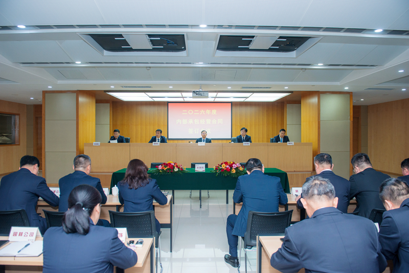 2026年4月21日,集团公司2026年度内部承包经营合同签字仪式在总部办公楼二楼报告厅举行。集团公司董事长徐鹏强、总裁朱九洲以及姜建鲁、吴杰、孟宪礼、房海、惠守江、王建波等高层领导出席仪式,集团总部部门负责人,18个签约单位领导班子成员参加了签字仪式。 集团公司副总会计师兼财务部总经理张福涛宣读了合同文本及各单位承包指标。 在签字环节,董事长徐鹏强代表董事会与总裁朱九洲代表集团公司经理层签订了承包经营合同,副总裁惠守江签字公证;随后,总裁朱九洲代表集团公司,依次与九个土建公司、两个安装公司、三个装饰幕墙公司,以及机械化施工公司、园林绿化公司、劳务管理处、物业管理公司等18个基层单位的总经理签订承包经营合同,其中,物业公司总经理郇庆国因出差未能到会,由副总经理赵晶晶代为签字,副总裁惠守江签字公证。 签字仪式结束后,董事长徐鹏强重点强调了三点要求,一是坚定信心,全力确保年度各项任务指标圆满完成;二是坚持依法守法经营,筑牢企业健康发展根基;三是强化精细管理,全面提升项目运营与成本管控水平。 签字仪式由集团公司副总裁孟宪礼主持。